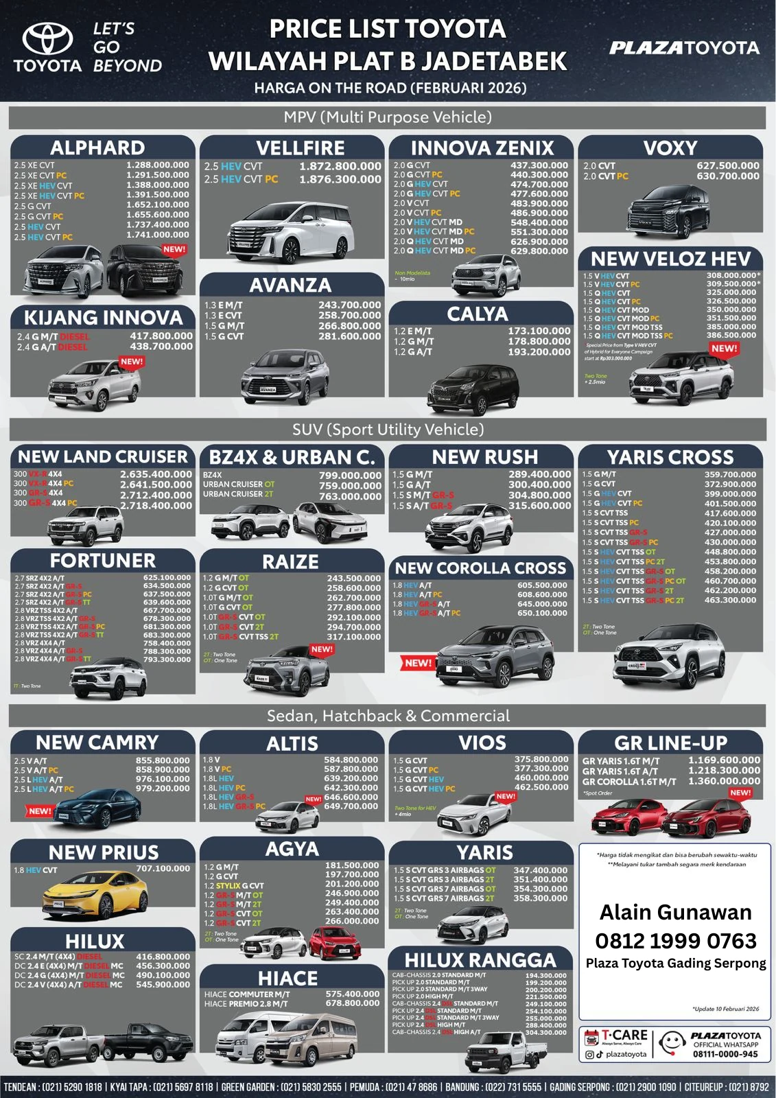 Pricelist Mobil Toyota OTR Jadetabek – Update Maret 2026